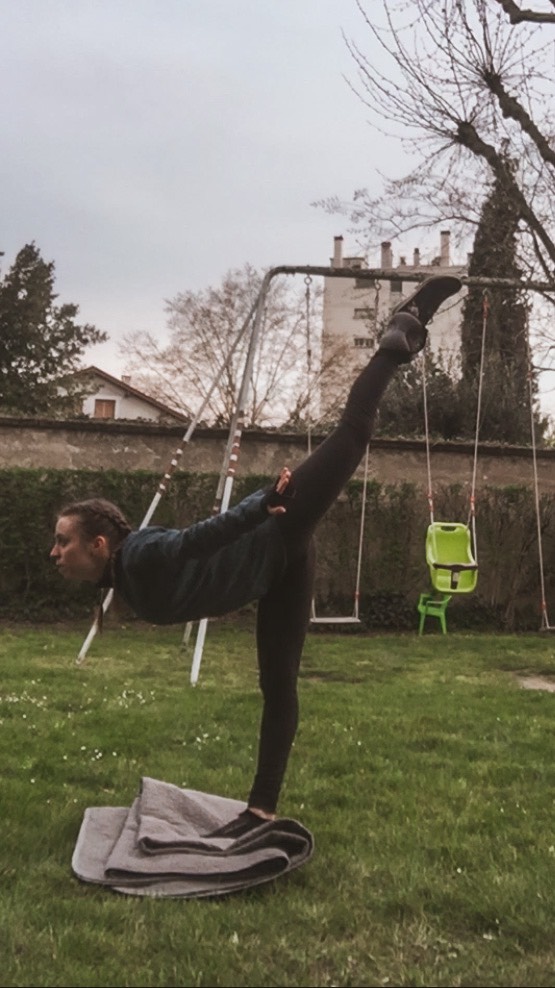 Tout cela m'a gardée très occupée puisque j'ai créé pour mes coéquipiers une routine générale d'étirements dès le début du confinement et un peu plus tard une routine spécifique (cette fois ci avec l'aide d'un de nos coachs) pour les arabesques et la souplesse. J'ai aussi eu l'occasion de donner un cours à mon équipe et de leur donner mes astuces.