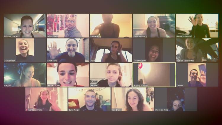 Nous ne savons toujours pas quand nous serons en mesure de reprendre les entraînements c'est pour cela que nous nous entraînons via appels vidéos. Ça fait du bien de voir la tête de tout le monde et même si nous ne sommes pas tous sur le même fuseau horaire, tout le monde est à l'heure, prêts à transpirer !