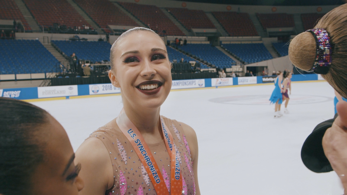 Le documentaire suit l'histoire de plusieurs patineurs synchro de tous les âges, comme Emily qui patine avec Crystallettes. (Credits: "Life in Synchro" - 2020)