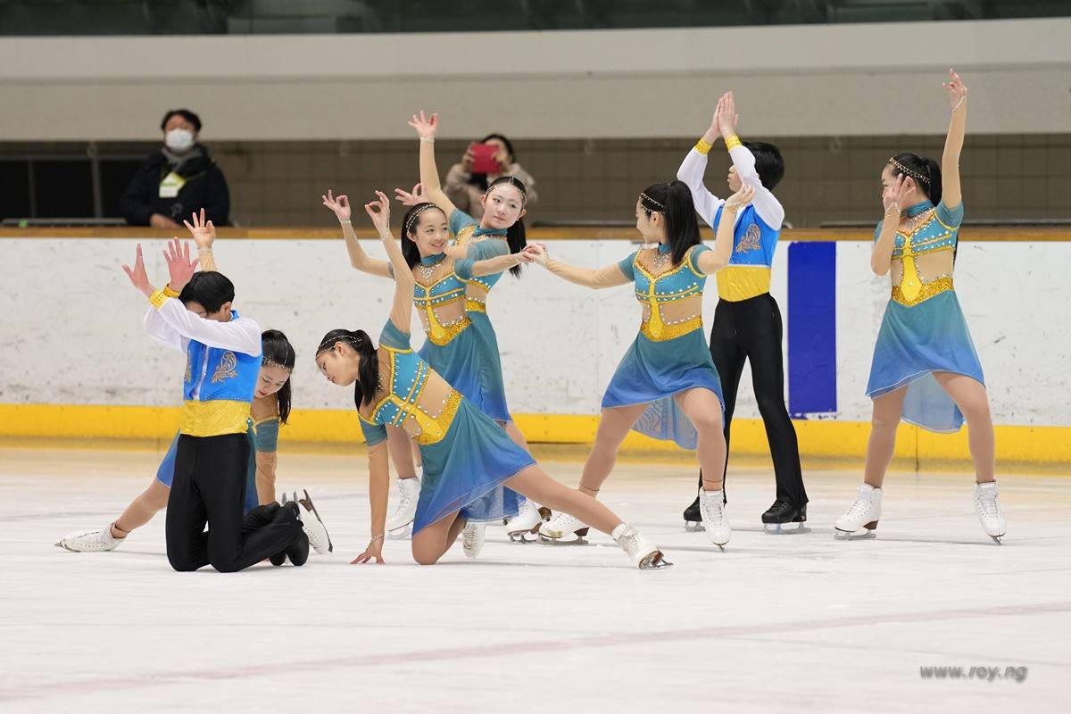 L'équipe Kyoto-Uji, championne nationale de la catégorie juvénile 2025, a ensuite présenté son programme sur le thème de Lilo et Stitch. Une chute malencontreuse lors de la ligne artistique a gâché un programme pourtant impeccable. L'équipe a obtenu 27,36 points pour conclure la saison.
