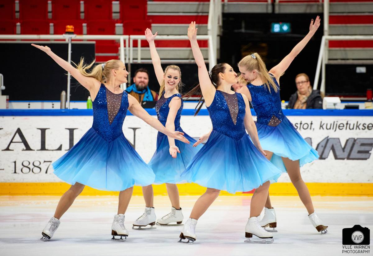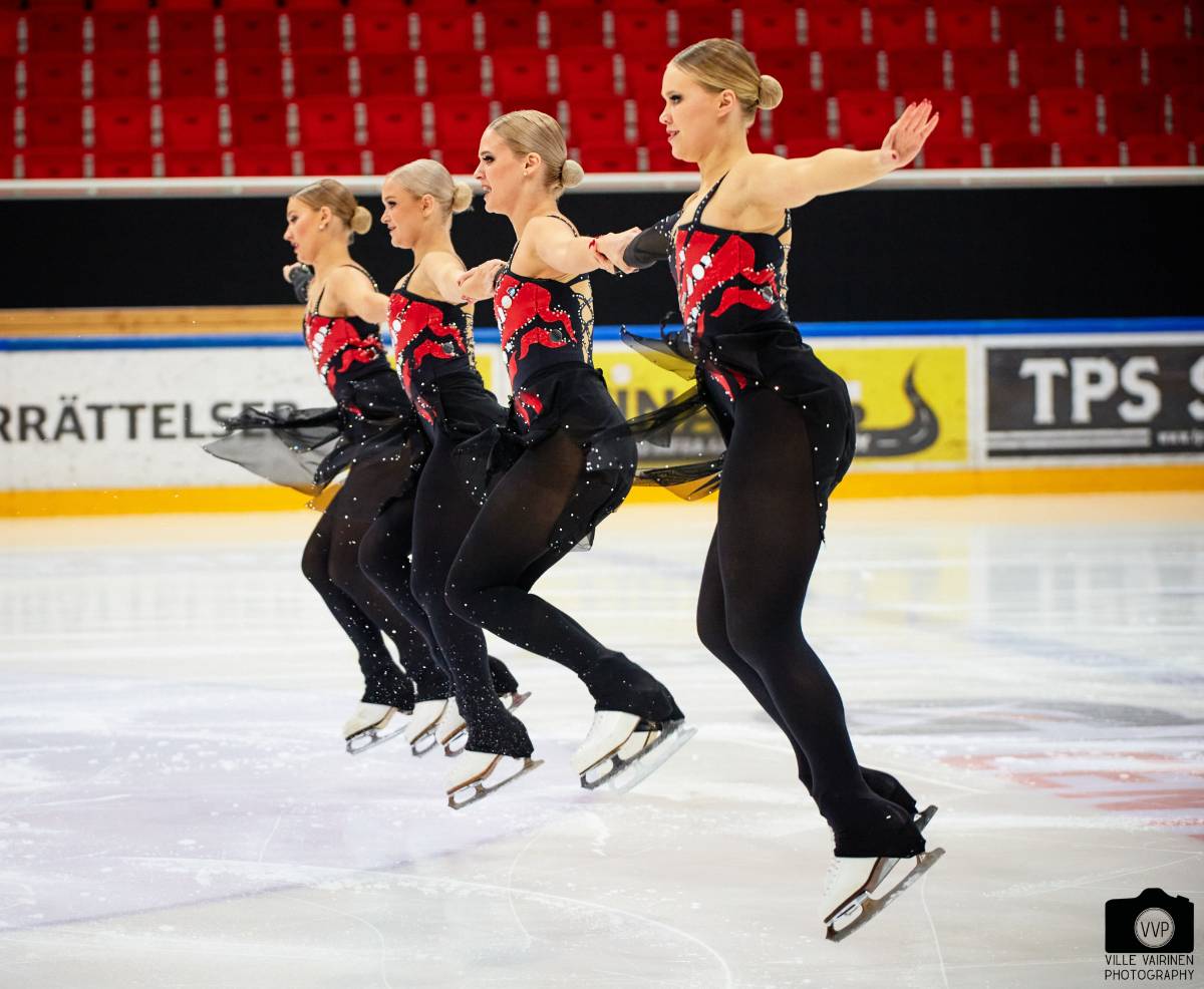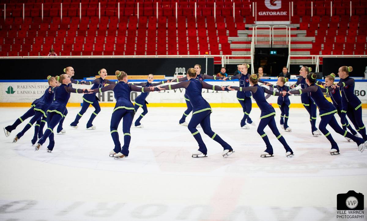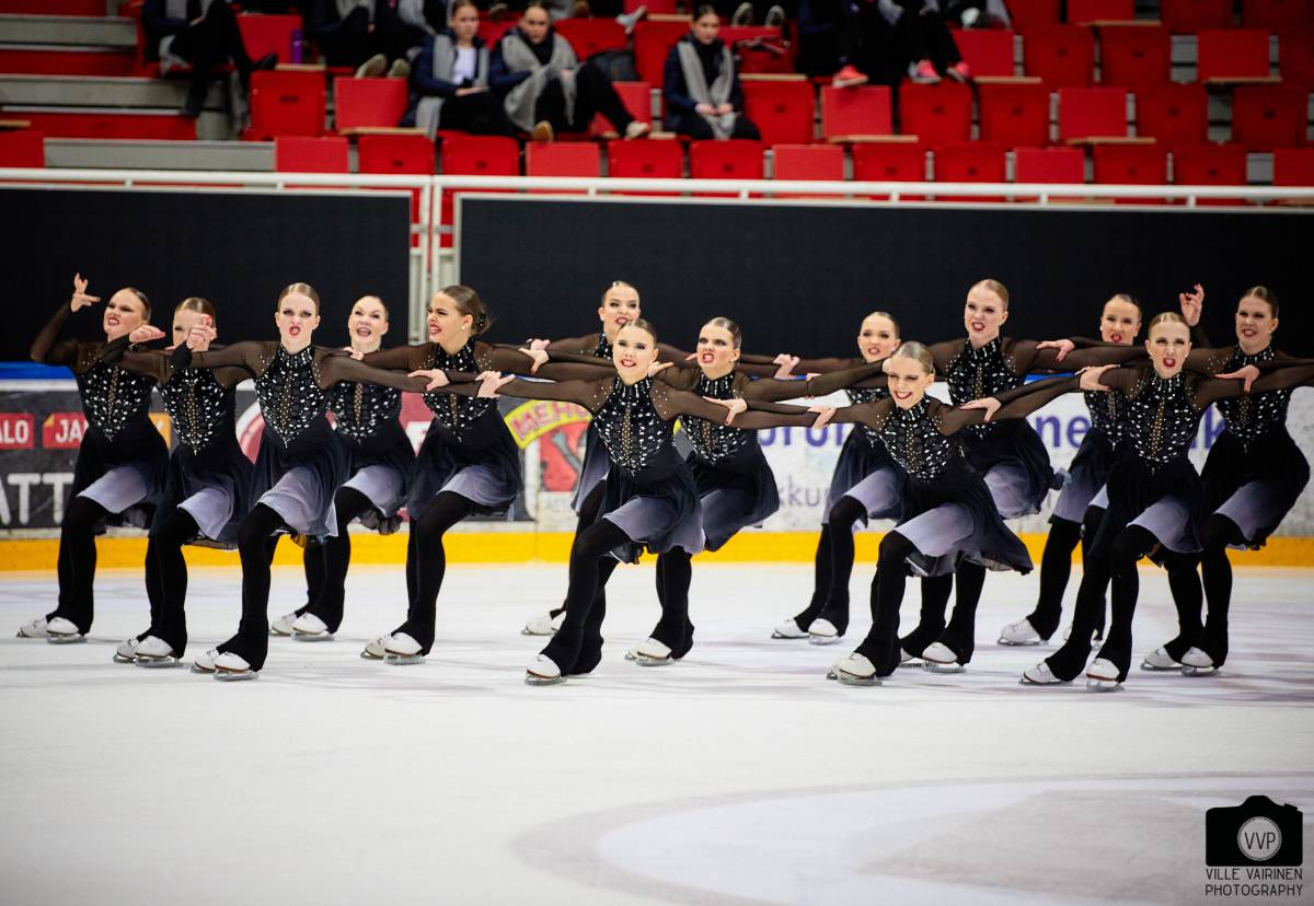 Valley Bay Synchrohearts d'Espoo a remporté la médaille d'or en patinant son programme "Bollywood Party" avec une bonne vitesse et une belle énergie, obtenant un score total de 56,67 points. Pas loin derrière eux, l'équipe Reunions, elle aussi d'Espoo, a terminé 2ème. Le jury a attribué à son programme "Just One Swing" un total de 54,95 points et la médaille d'argent. Le Team Chaotique a exécuté le programme "The Greatest Show" dans des robes originales, est arrivée troisième, a obtenu 53,30 points et la médaille de bronze à Helsinki.