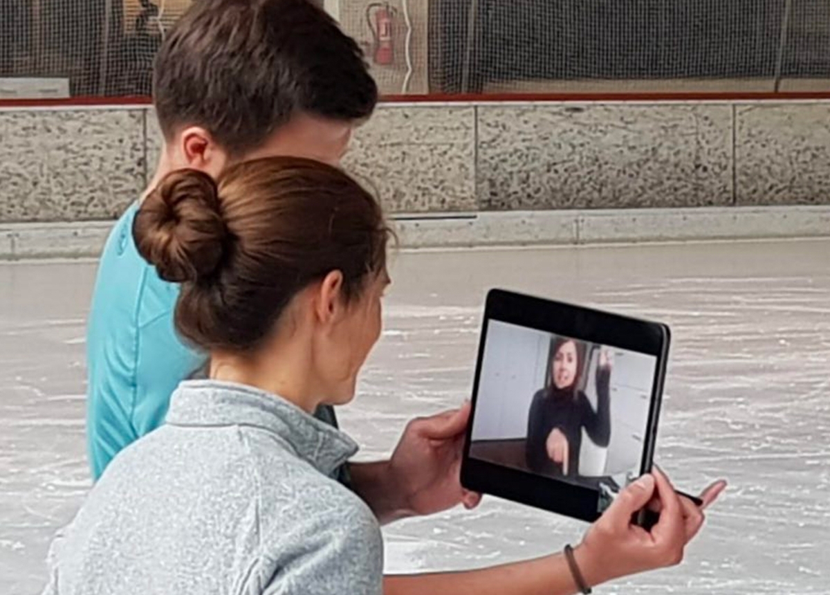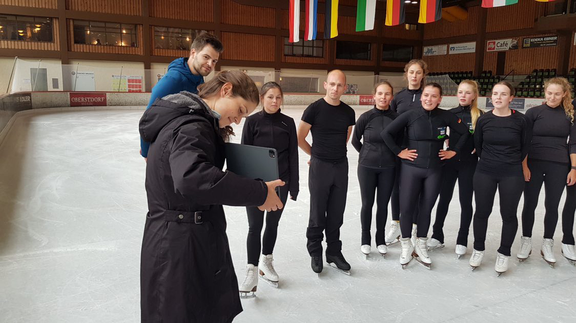 Marilyn was always connected with the German through the tablet. "From her workroom, she showed us the steps she wanted us to do, and we transferred them onto the ice in Oberstdorf. Sometimes, due to the time difference, the training was in the middle of the night for her in Canada. Due to the live streaming, Marilyn was able to follow up on everything and was able to give corrections and make adjustments simultaneously," the team enthuses.