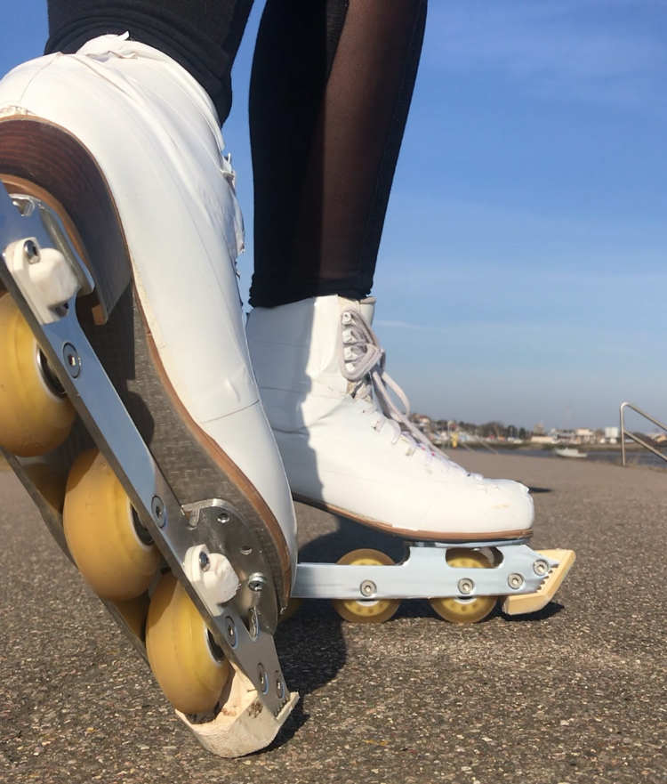"When I realized the ice rinks would be closed I remembered I had purchased some off ice skates a few years ago but never used them. I mounted them to an old pair of ice skating boots and took them to the local park a short walk from my house. I found that it is a good form of exercise that doesnât impact your ankles as much as running on concrete does. It also allows you to keep up the muscle tone that being in the ice usually maintains."