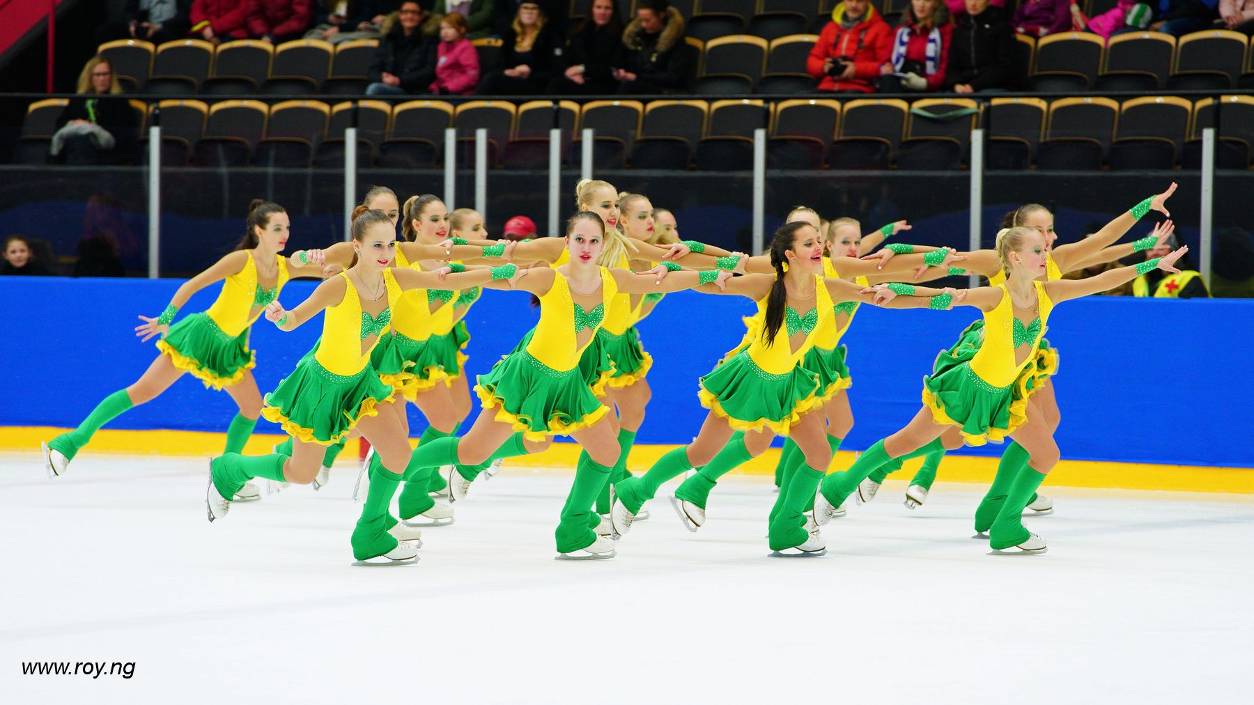 <p>The skaters of Sunrise 1 (RUS) during their performance in Sweden this weekend. / Credits: Roy Ng Photography</p>