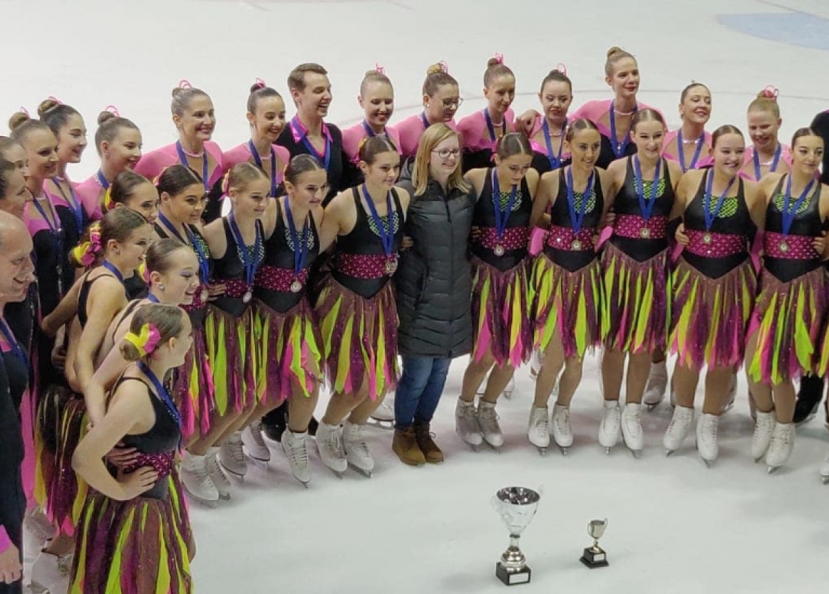 Whizz Kids from Altrincham came first with 54.83 points. Skating to "The Greatest Showman", they had a strong opening with sharp movements and a speedy Pivot Block. There were plenty of tricks which delighted the crowd with splits and backflips and they gained a level 4 in their spins. Overall, they skated with good speed and had good flow across the ice, attempting more difficult turns and elements.