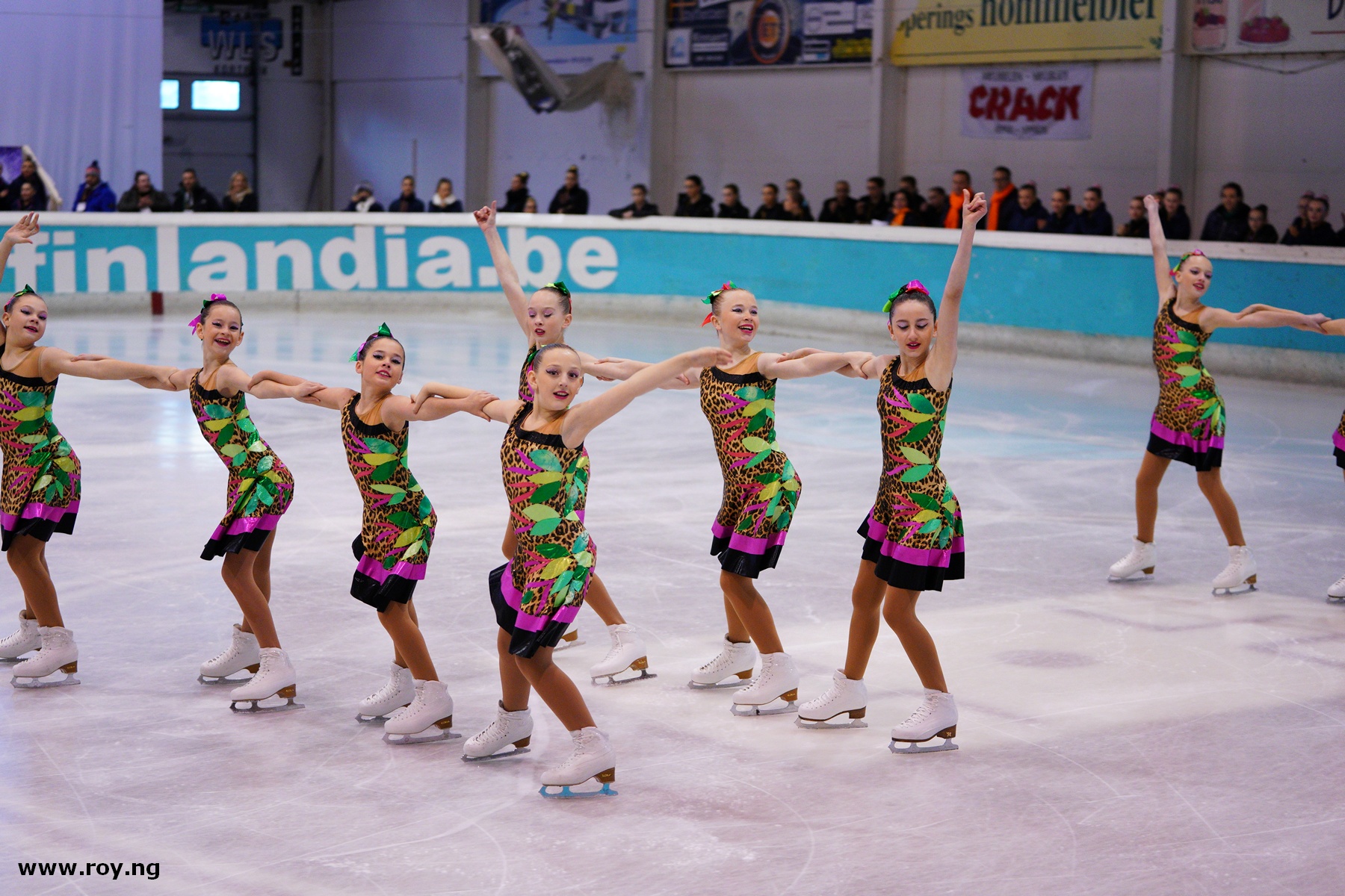 Despite a fall in their Line element, winner of the Basic Novice category British Ice Stars (29.08 points) dressed in colorful dresses beat their Belgian opponents by a wide margin of 5.17 points. The Silver medallist Team Novia (23.91 points), a team under Synchro Turnhout, is also the Belgian Champion in the category. The Bronze medallist Ice Cubes followed closely missing only 1.7 points.