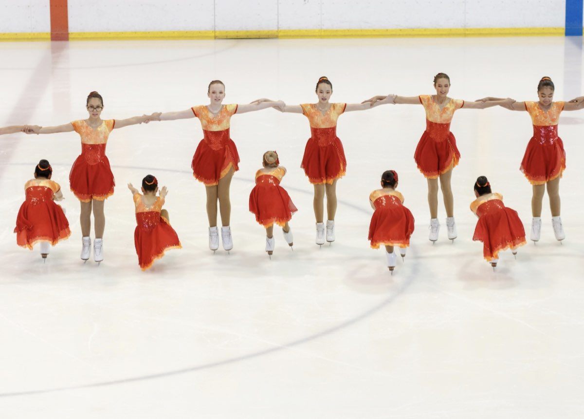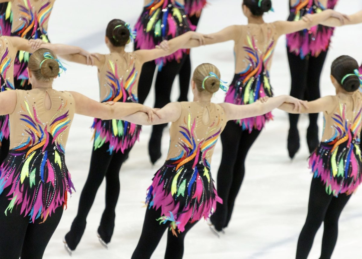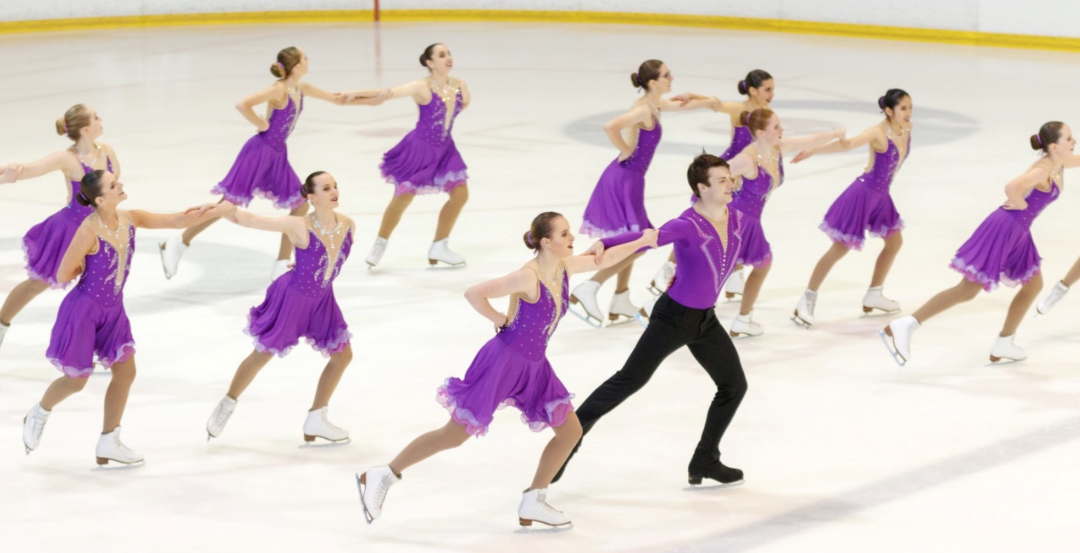 rnDans la catégorie Adultes, les Dominos ont terminé en tête avec une légère avance de 0,72 points. Dans de magnifiques robes bleu dégradé et avec une chorégraphie sur ‘Roméo et Juliette’, les patineurs ont présenté un bloc pivotant lent mais régulier puis un Cercle Artistique qui comportait une magnifique pirouette au centre. Revolution est pour sa part arrivé en deuxième position, avec sa musique envoûtante et ses robes assorties. Leur chorégraphie effrayante a marqué des points dans l'interprétation, mais cela n’a pas suffi pour les placer à la première place.