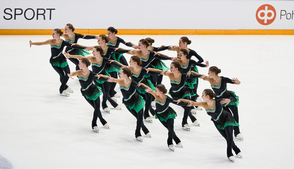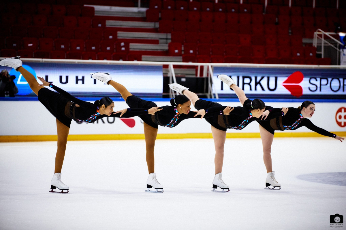 Le Team Unique de Finlande est en tête des programmes courts seniors. (Crédit : Ville Vairinen - 2022)